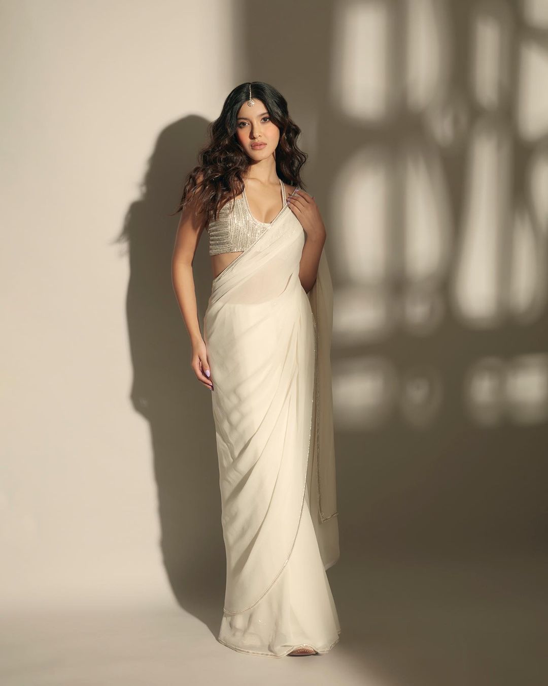 Shanaya Kapoor looks breathtaking in the white chiffon saree