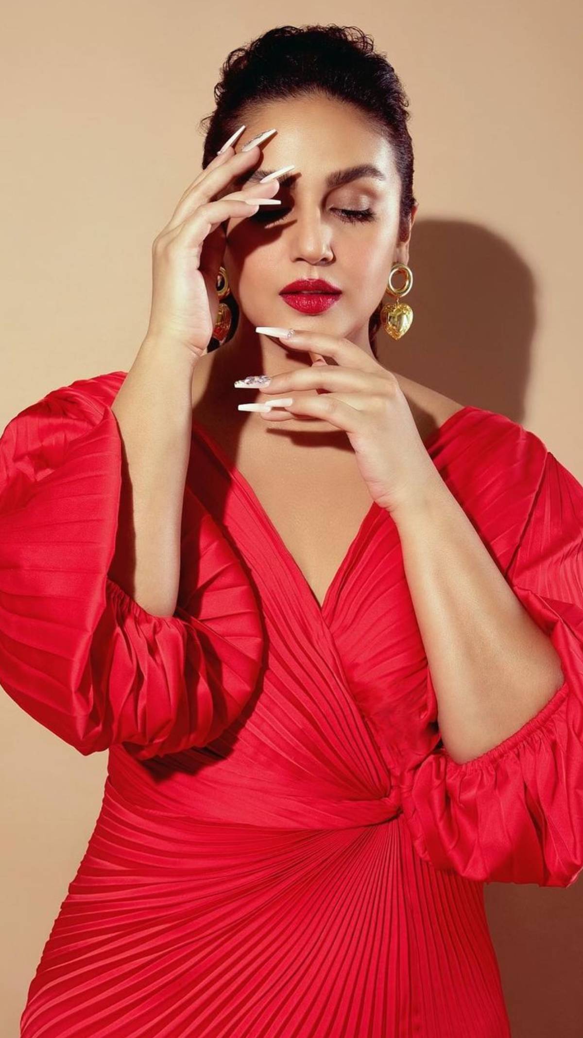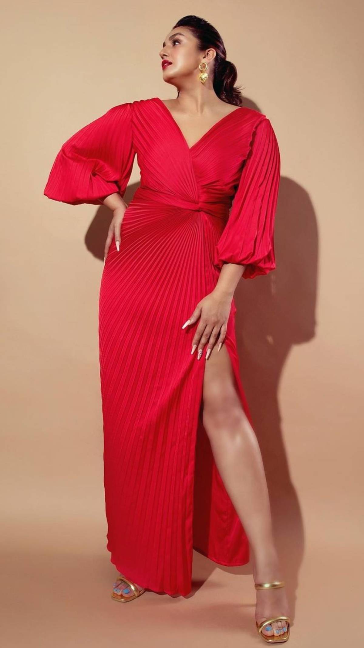 Huma Qureshi is raising temperatures in a red pleated dress.