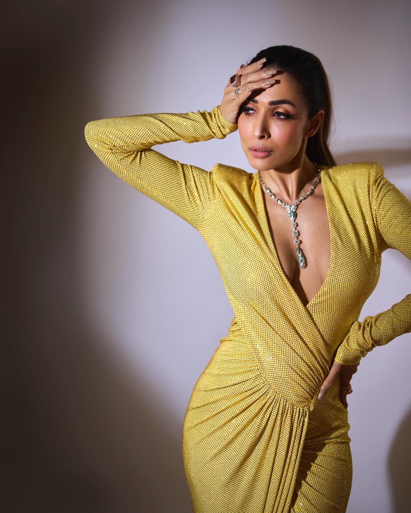 Malaika Arora looks stunning in a cleavage-baring yellow dress in her latest photoshoot.