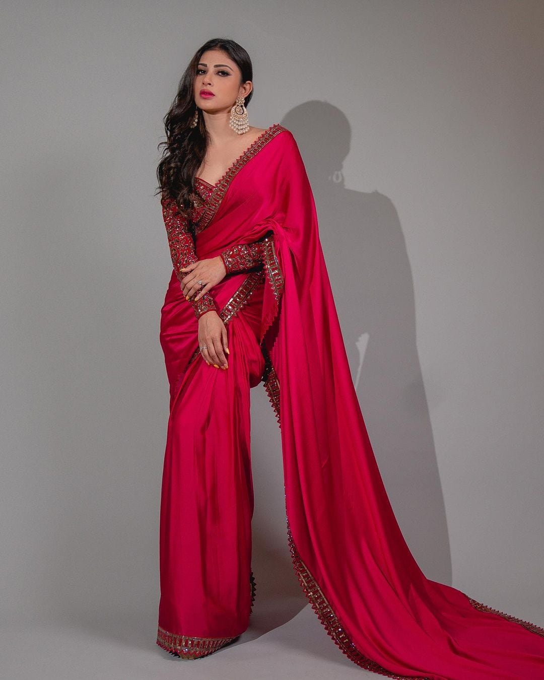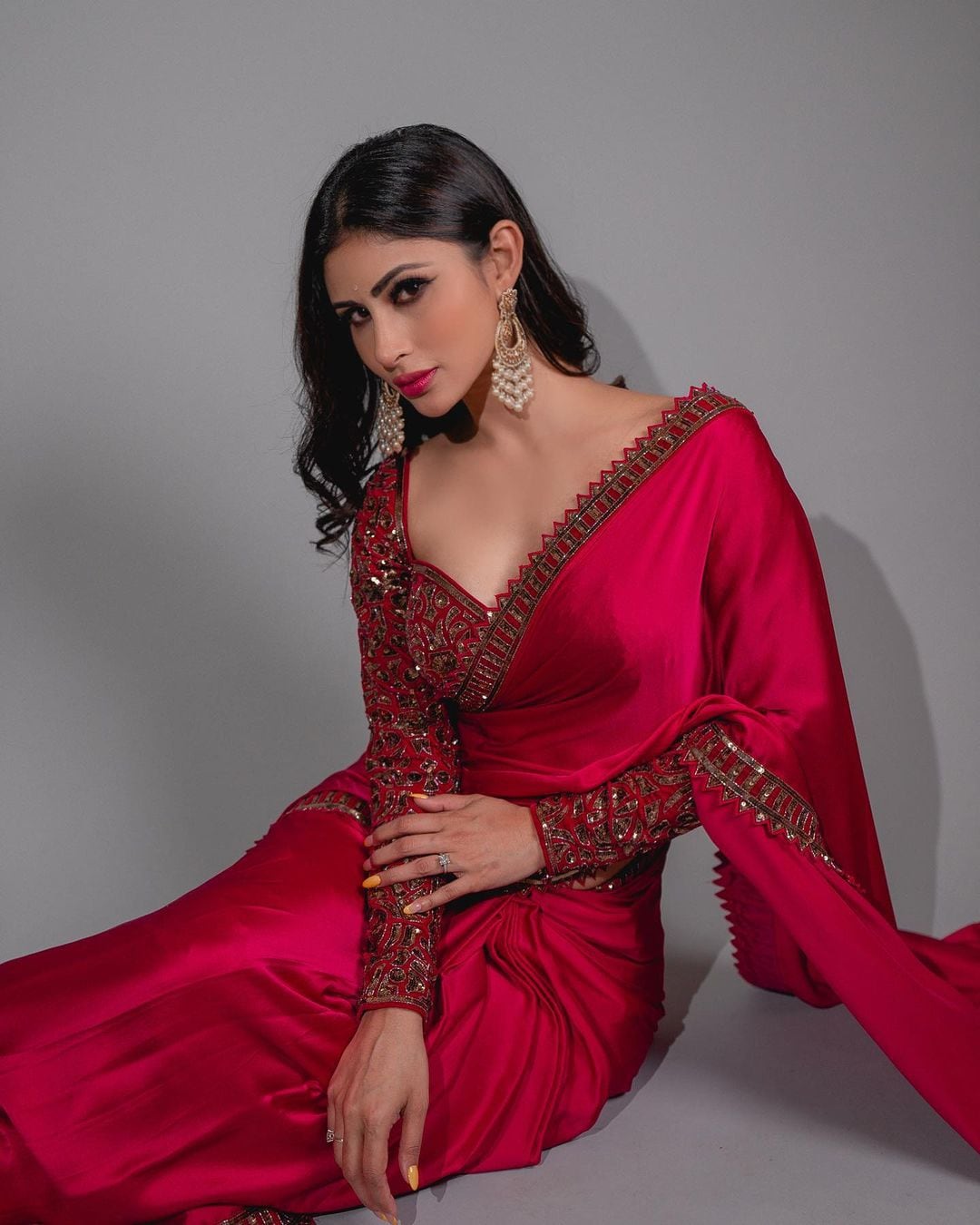 Mouni Roy looks breathtaking in the deep red saree