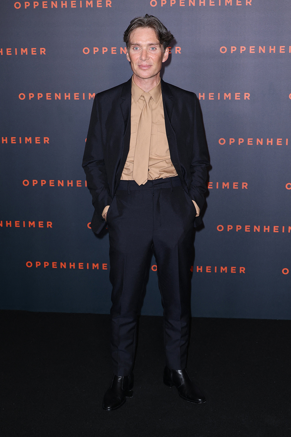 Cillian Murphy, who plays the title role, arrives in style at the ‘Oppenheimer’ Premiere. He paired a black suit with a monochromatic beige shirt and tie.