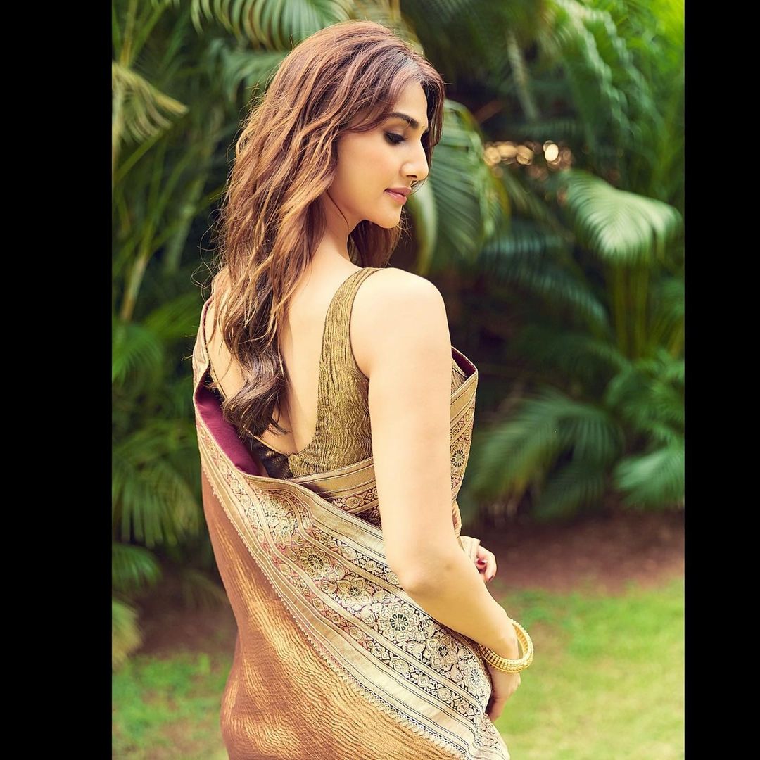 Sara Ali Khan cuts a striking figure in the orange saree.