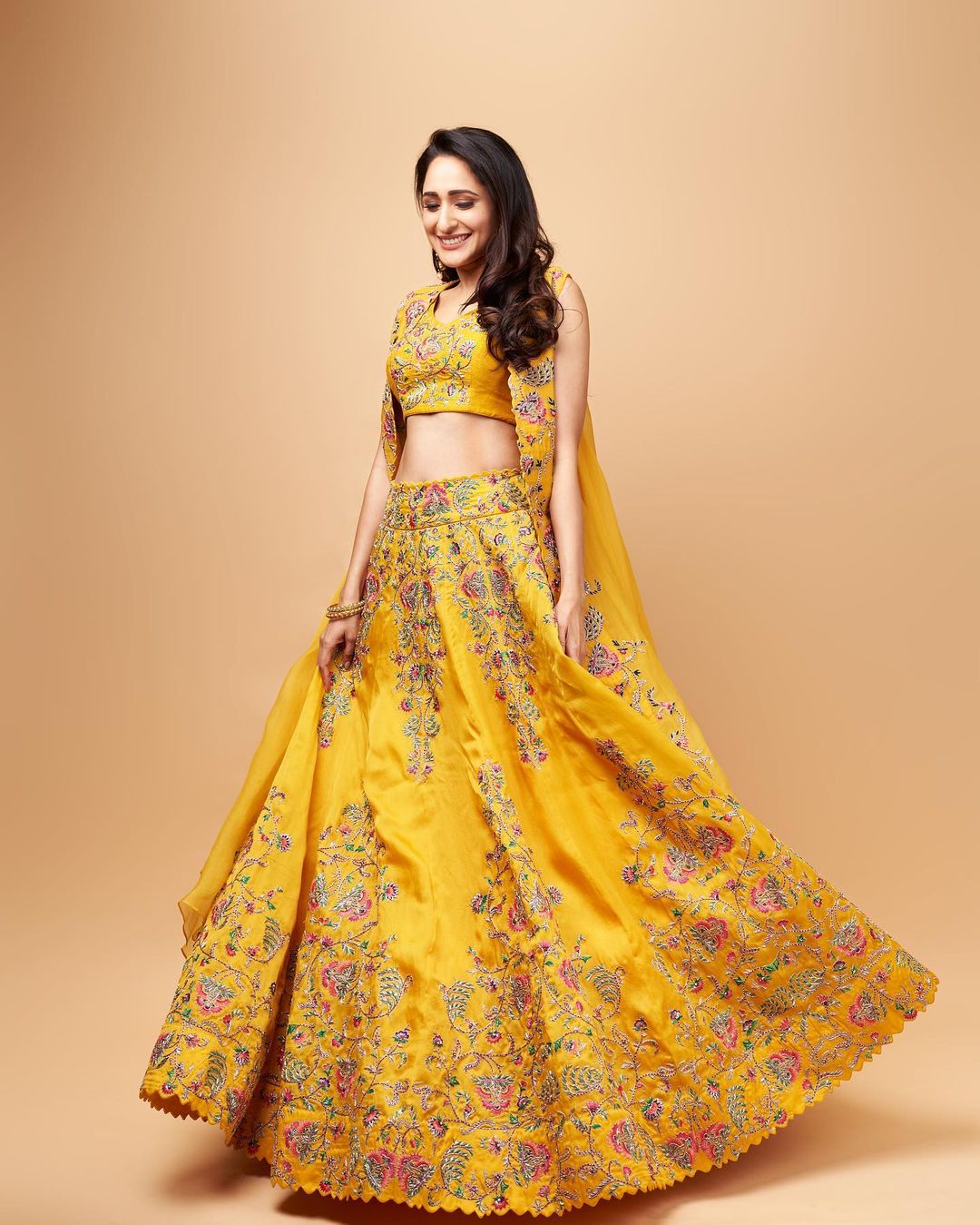 Pragya Jaiswal looks graceful in the yellow lehenga