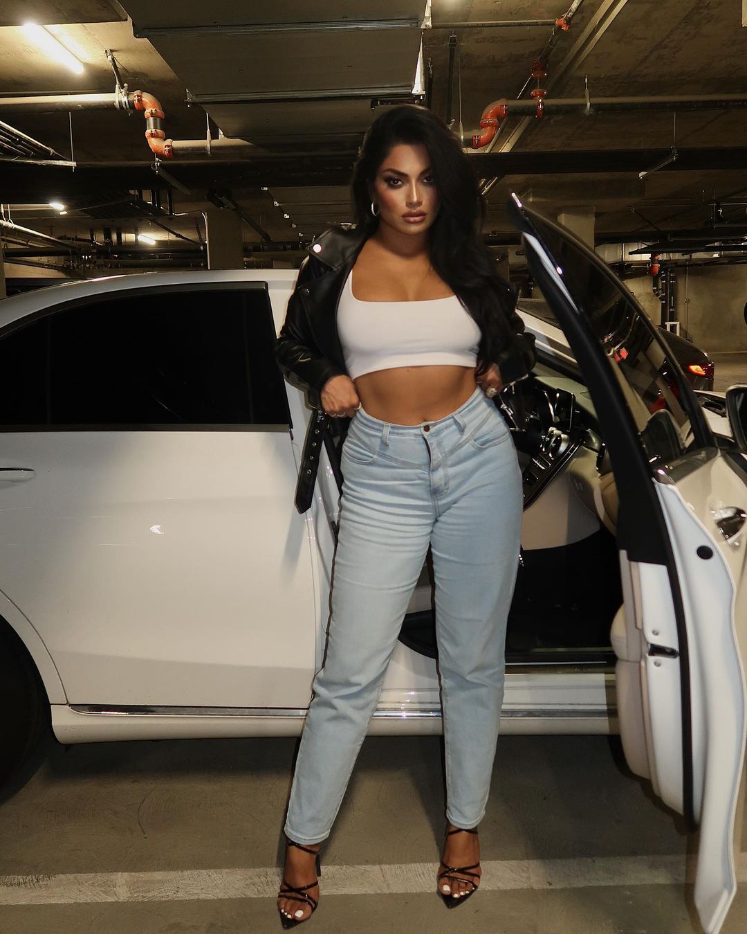Mouni Roy looks uber sexy in the scarf top and leather pants