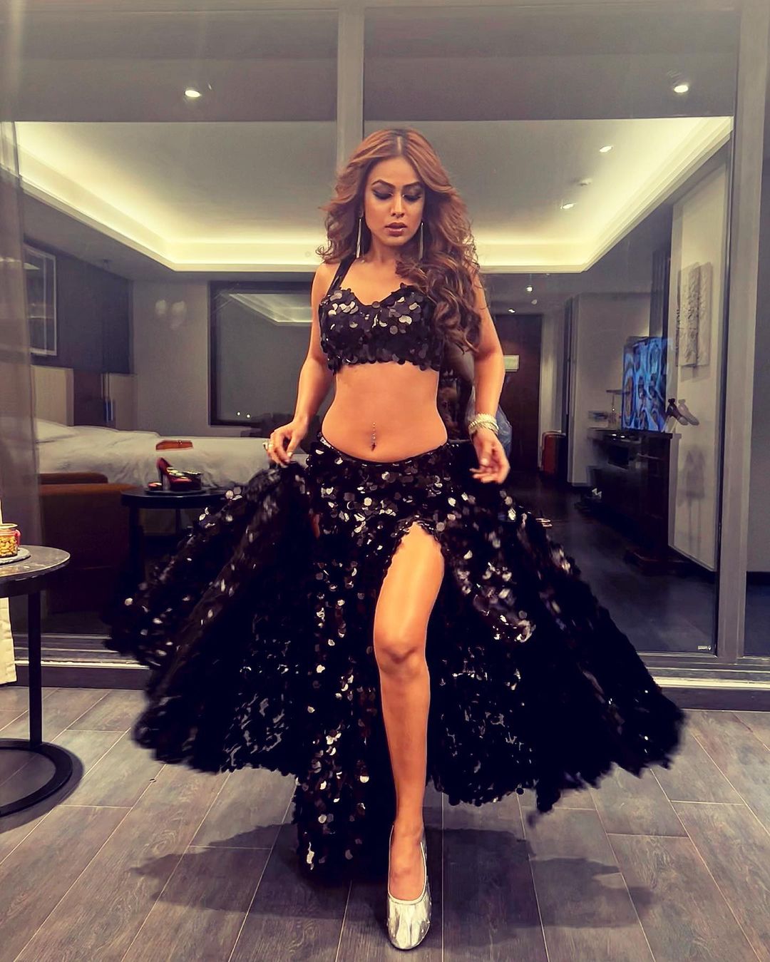 Nia Sharma Oozes Oomph In Black Sequinned Lehenga