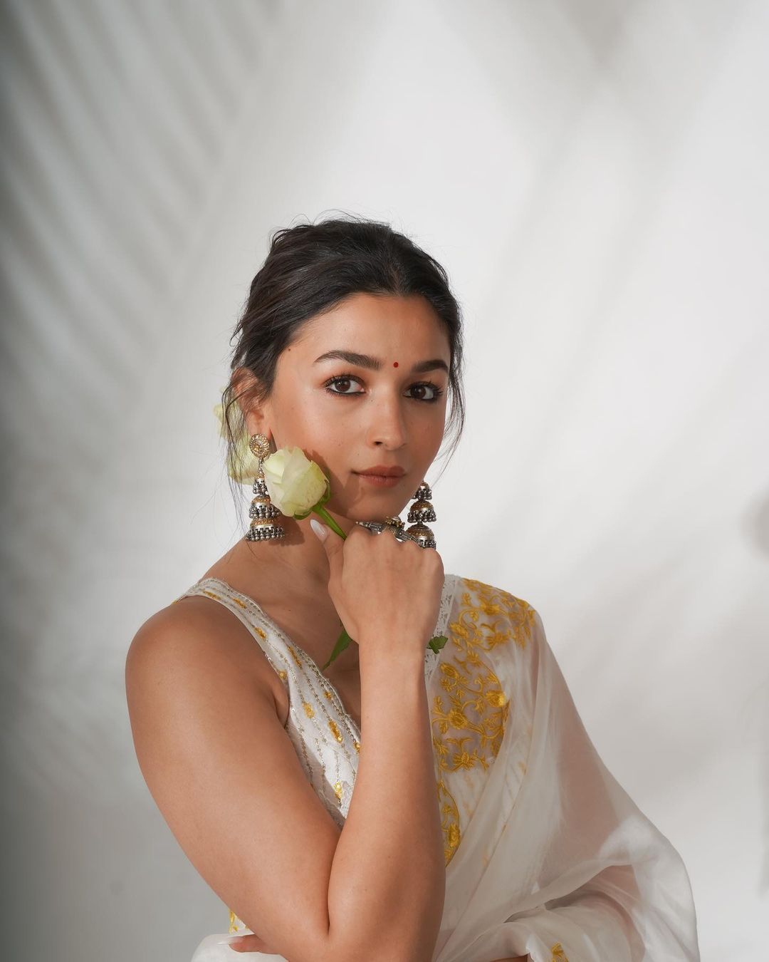 • Alia Bhatt looks gorgeous in a white organza saree
