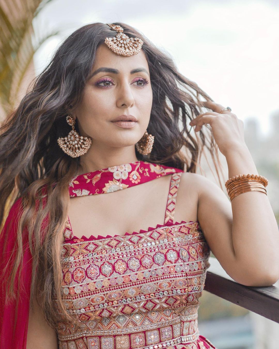 Hina Khan Looks Royal, Elegant In Red Lehenga