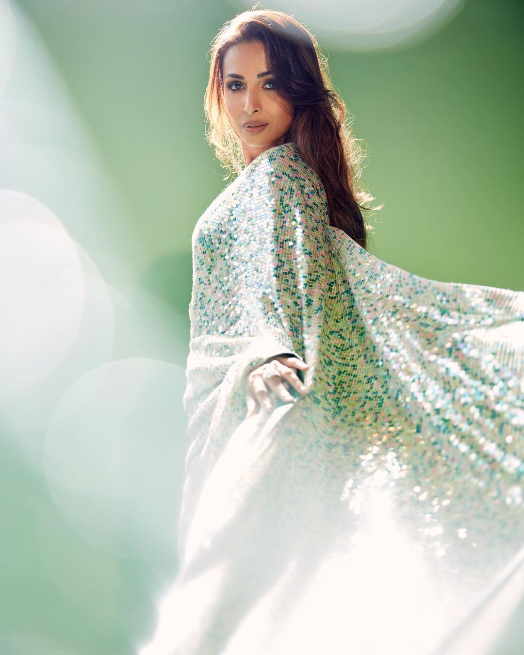 Malaika Arora strikes a sexy pose in the shimmering saree