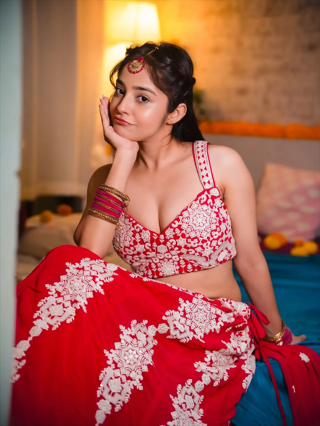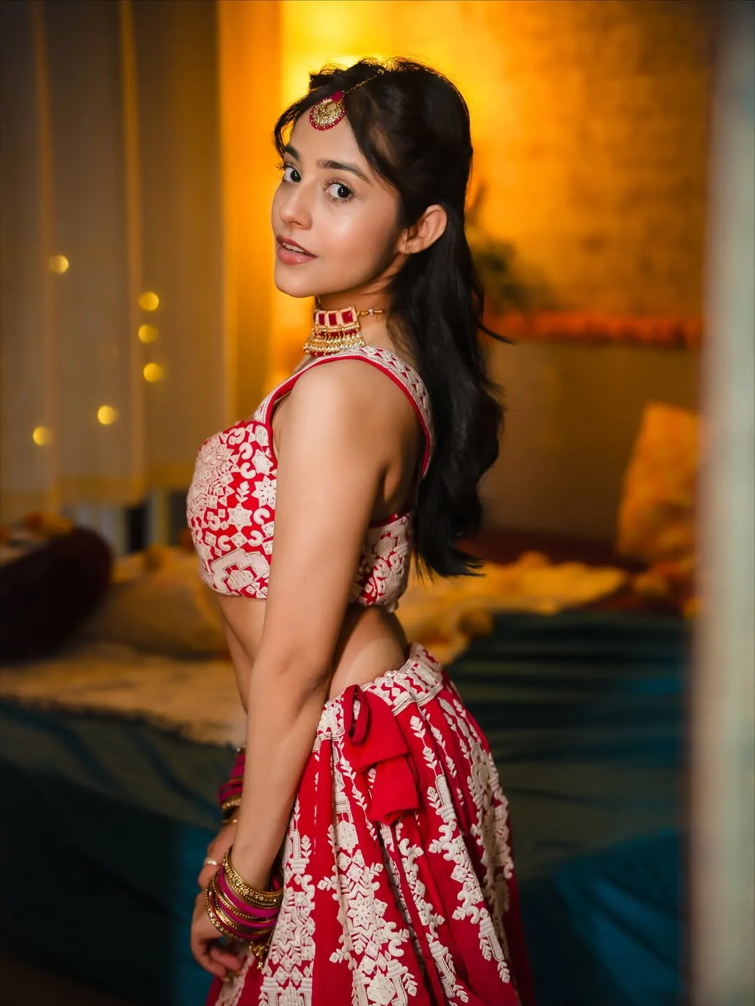 To complete her festive look, Riya adorned herself with classic jewelry pieces that added a touch of royalty.
