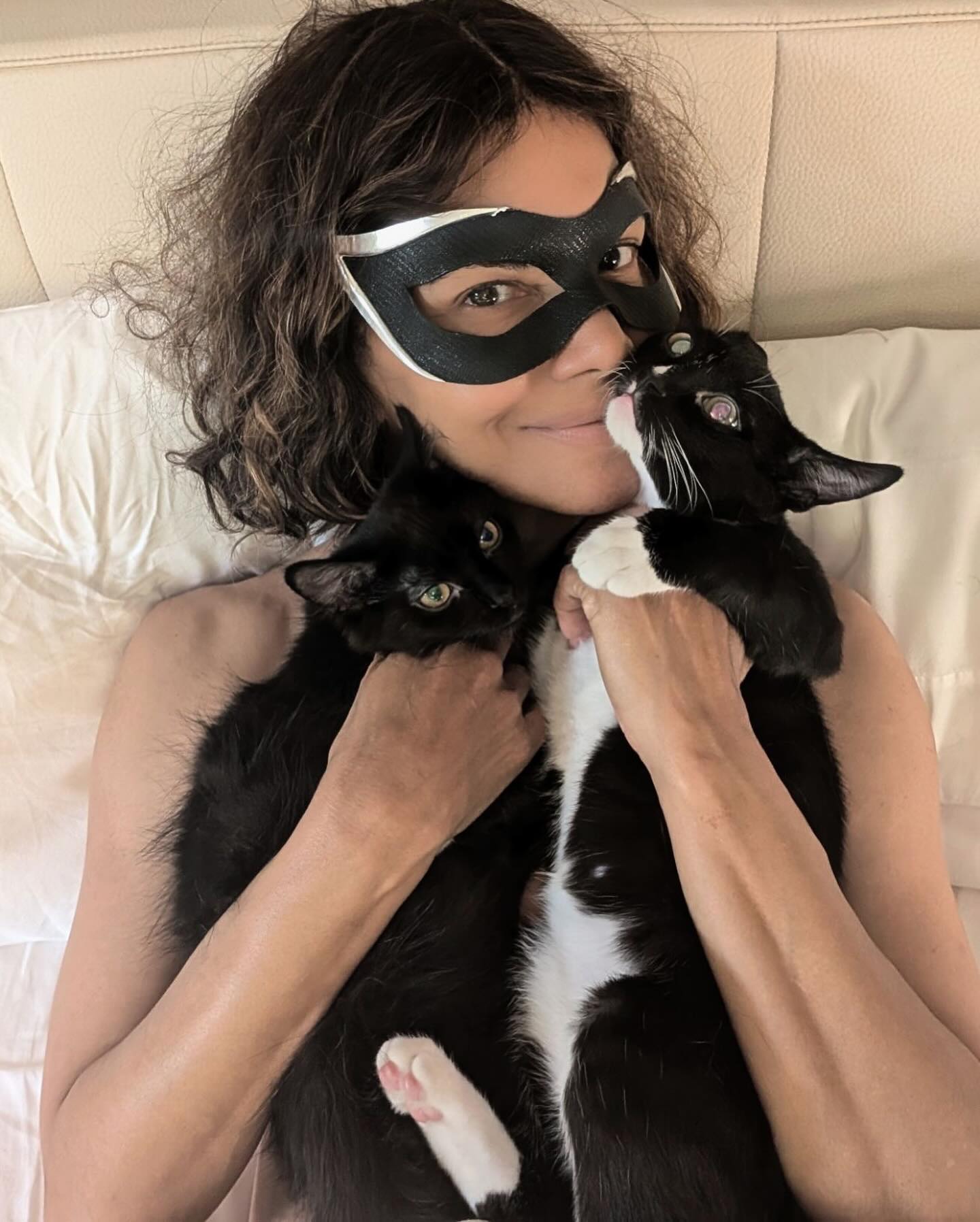 Berry thanked a fan named Jee for helping her rescue the two black cats in the photo with her