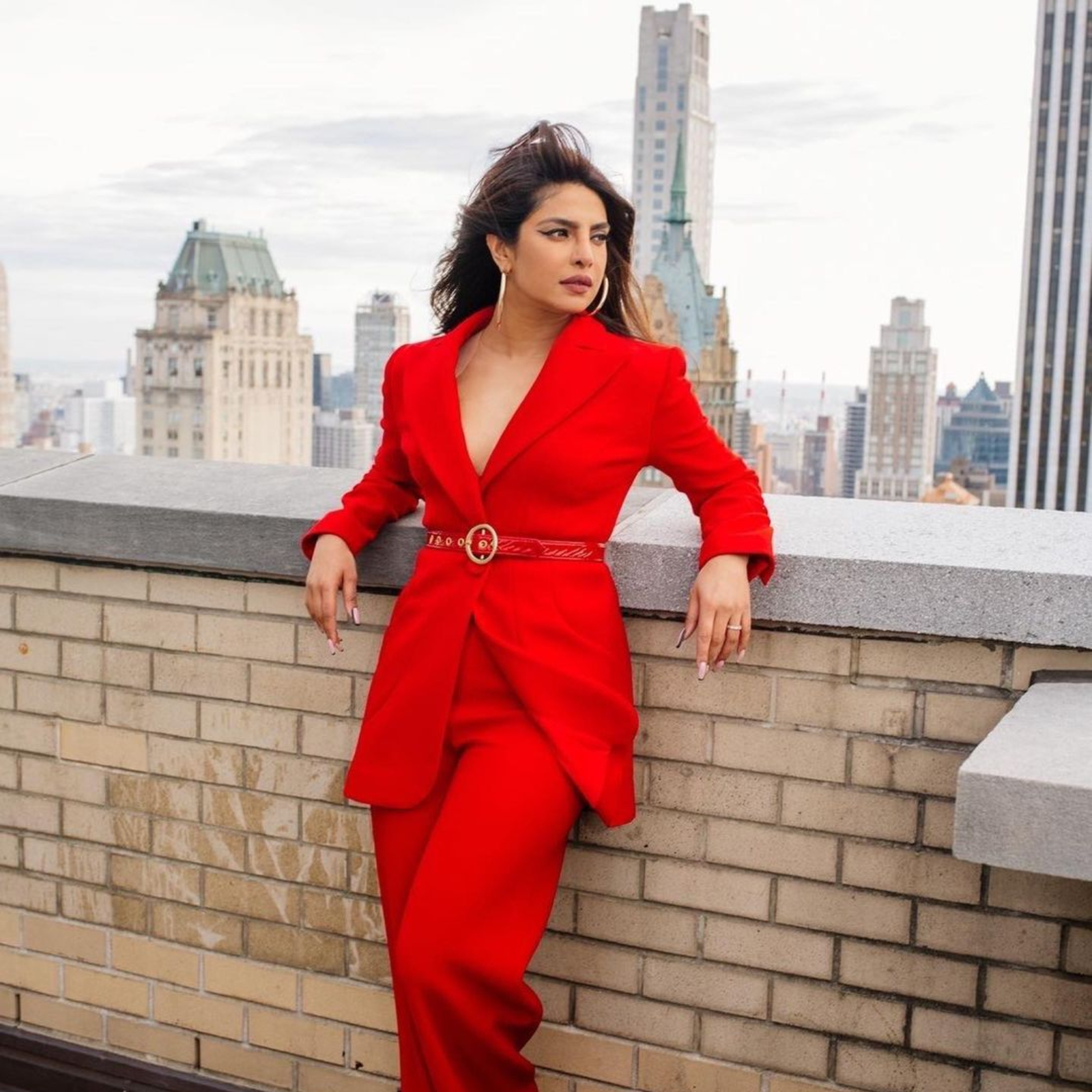 Priyanka Chopra looks uber chic in the smart red pantsuit