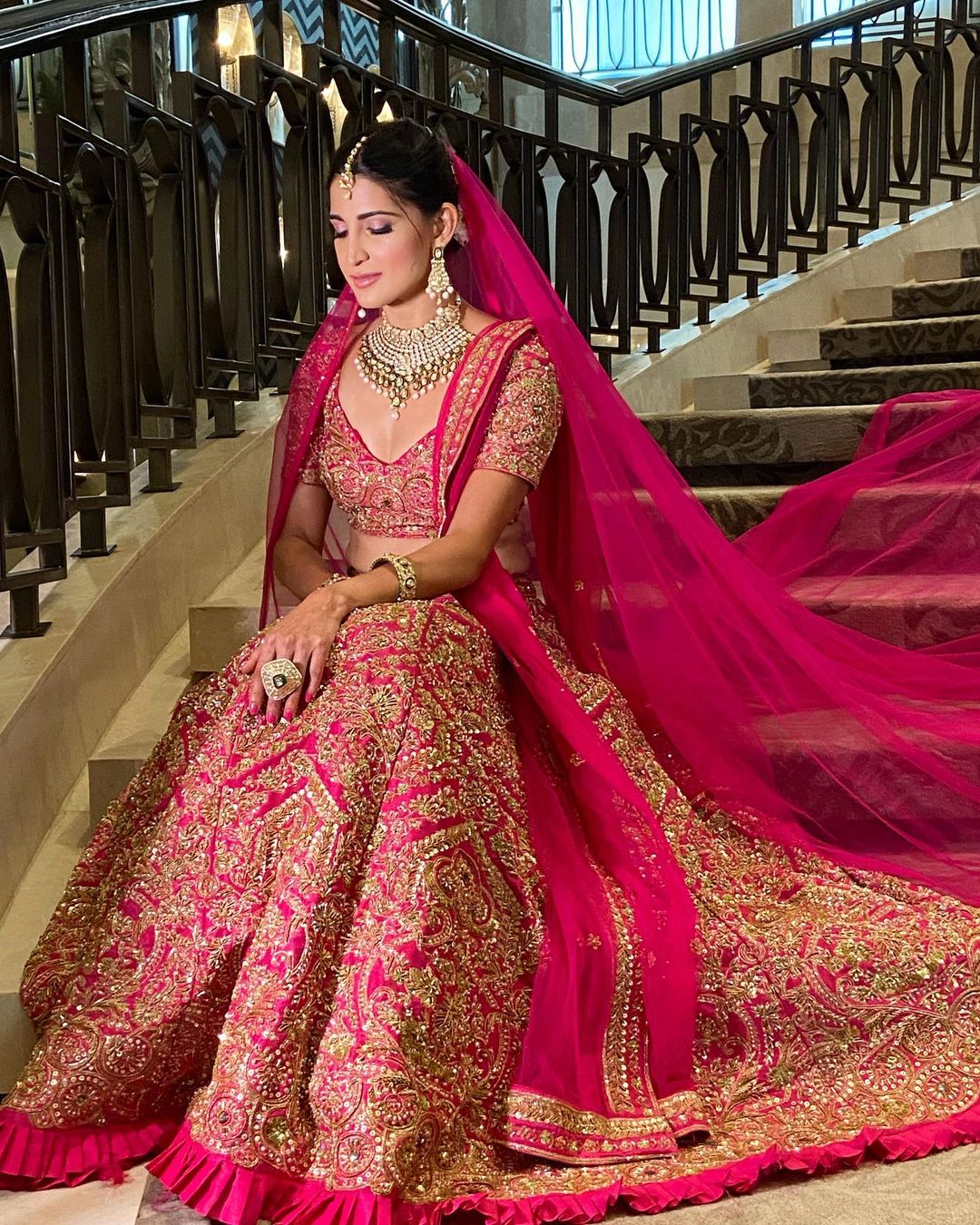 Aahana Kumra is a sight to behold in the ornate pink and golden lehenga