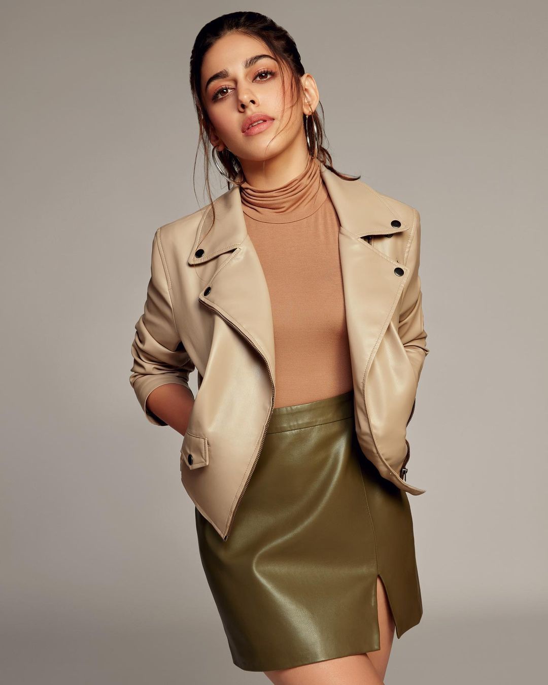 • Alaya F looks flawless in the faux leather jacket and skirt