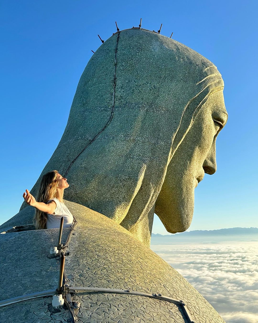 Gisele Bündchen gets the full experience of the Christ the Redeemer sculpture in Rio