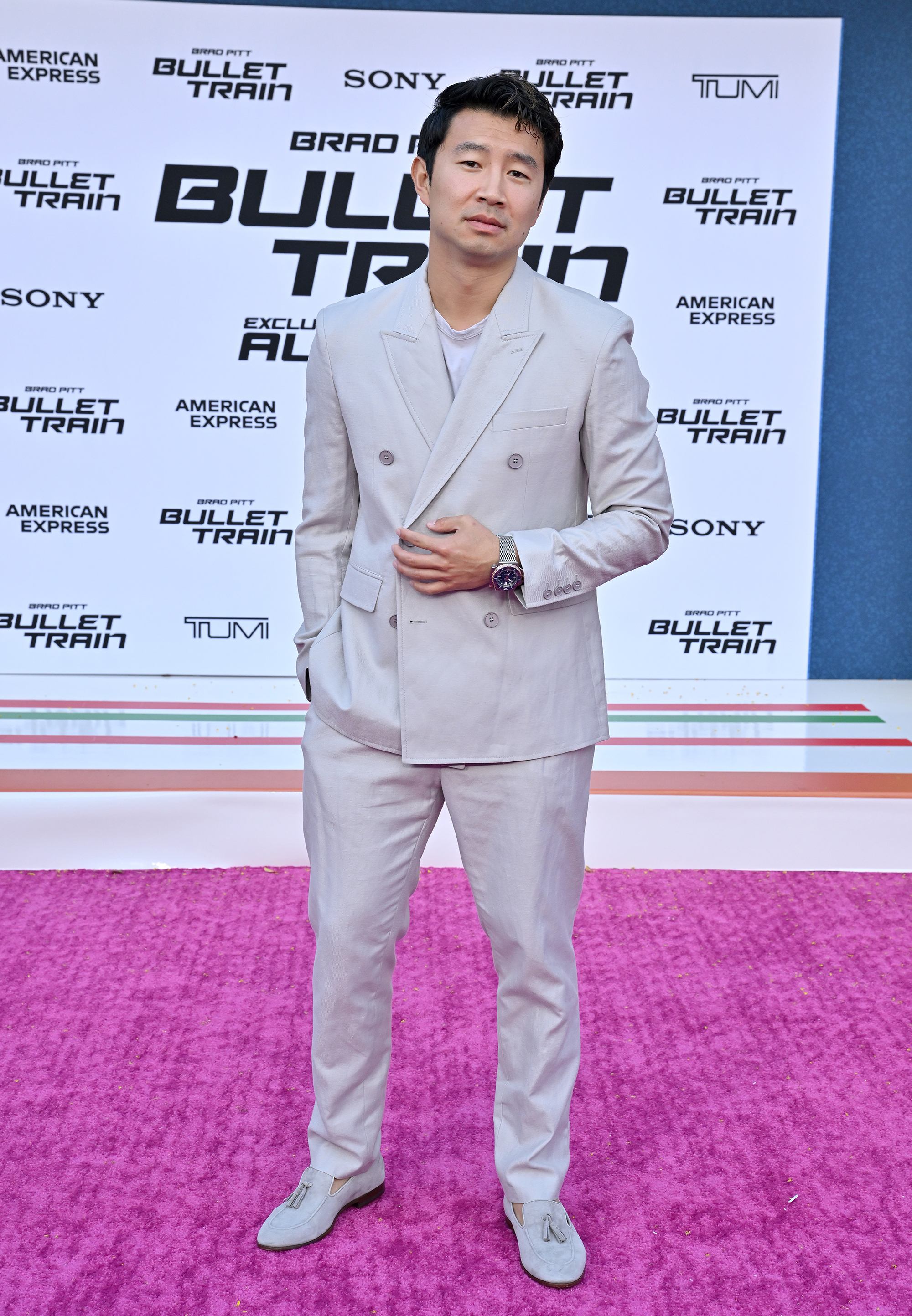 Simu Liu on the "Bullet Train" LA premiere red carpet.