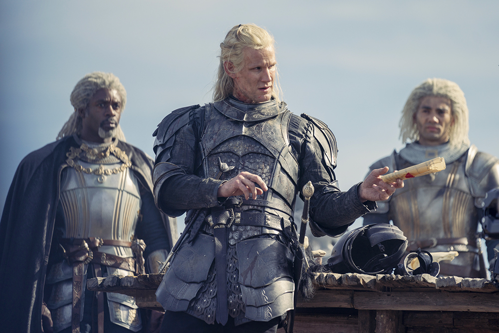 Daemon Targaryen is ready to get his hands dirty. He heads to the battlefield with Corlys and Laenor Targaryen.