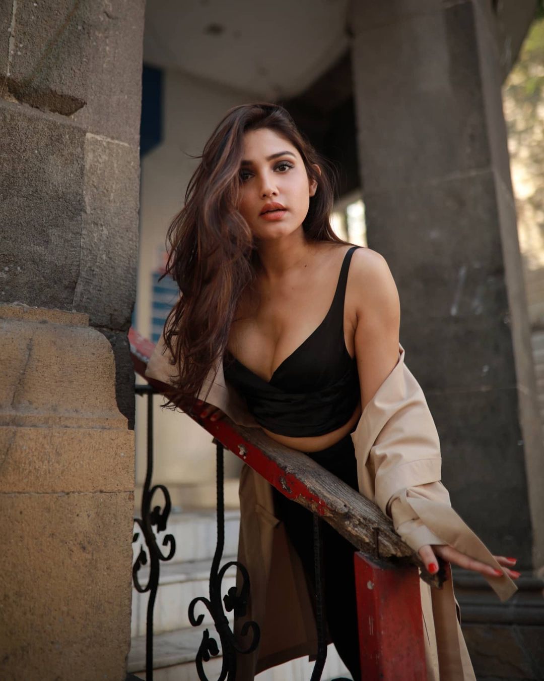 • Donal Bisht flaunts her sexy cleavage in a black ensemble topped with an overcoat