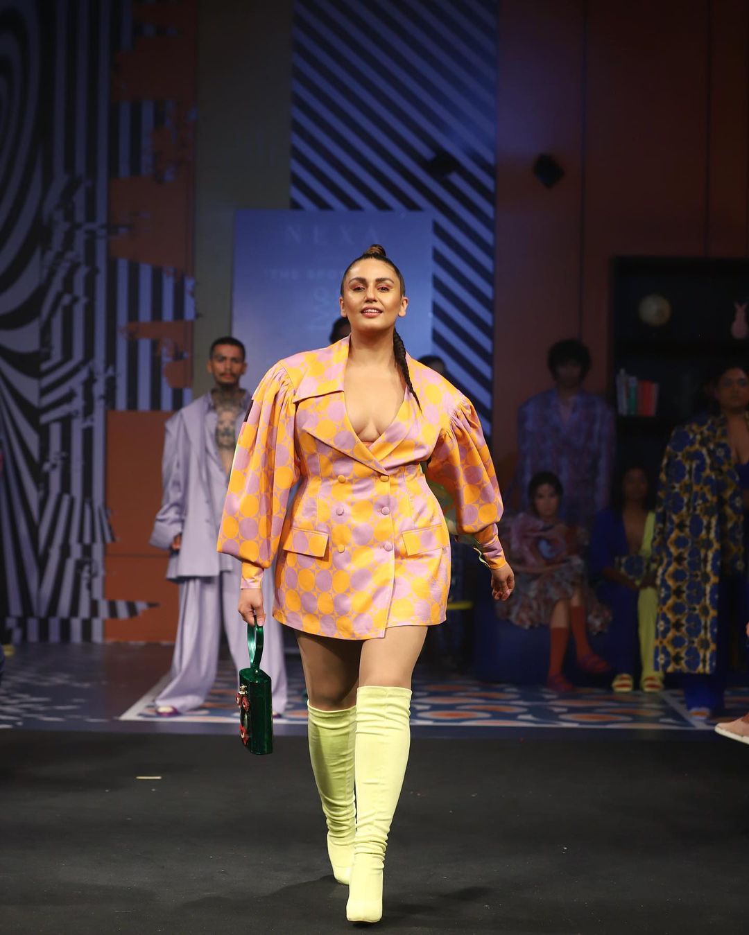 Huma Qureshi looked cool in the colourful blazer dress as she walked for Two Point Two Studio