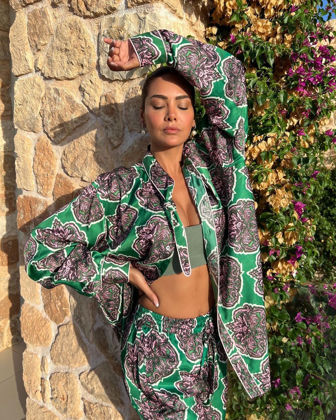Sayani Gupta looks elegant in the green floral printed saree