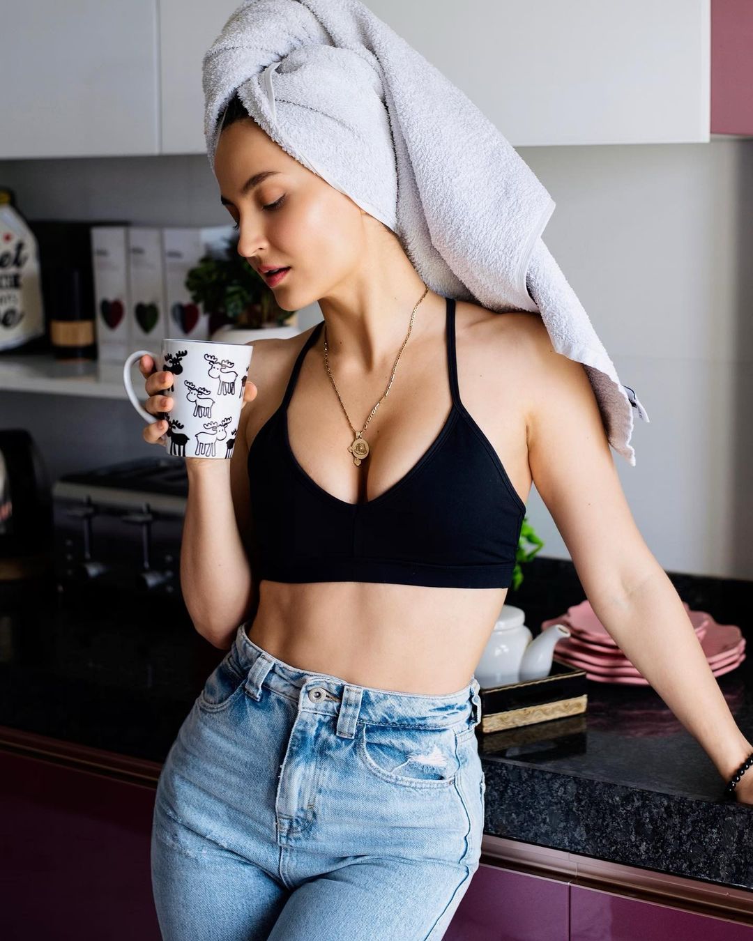 Surbhi Chandna flaunts her toned figure in the slinky black outfit