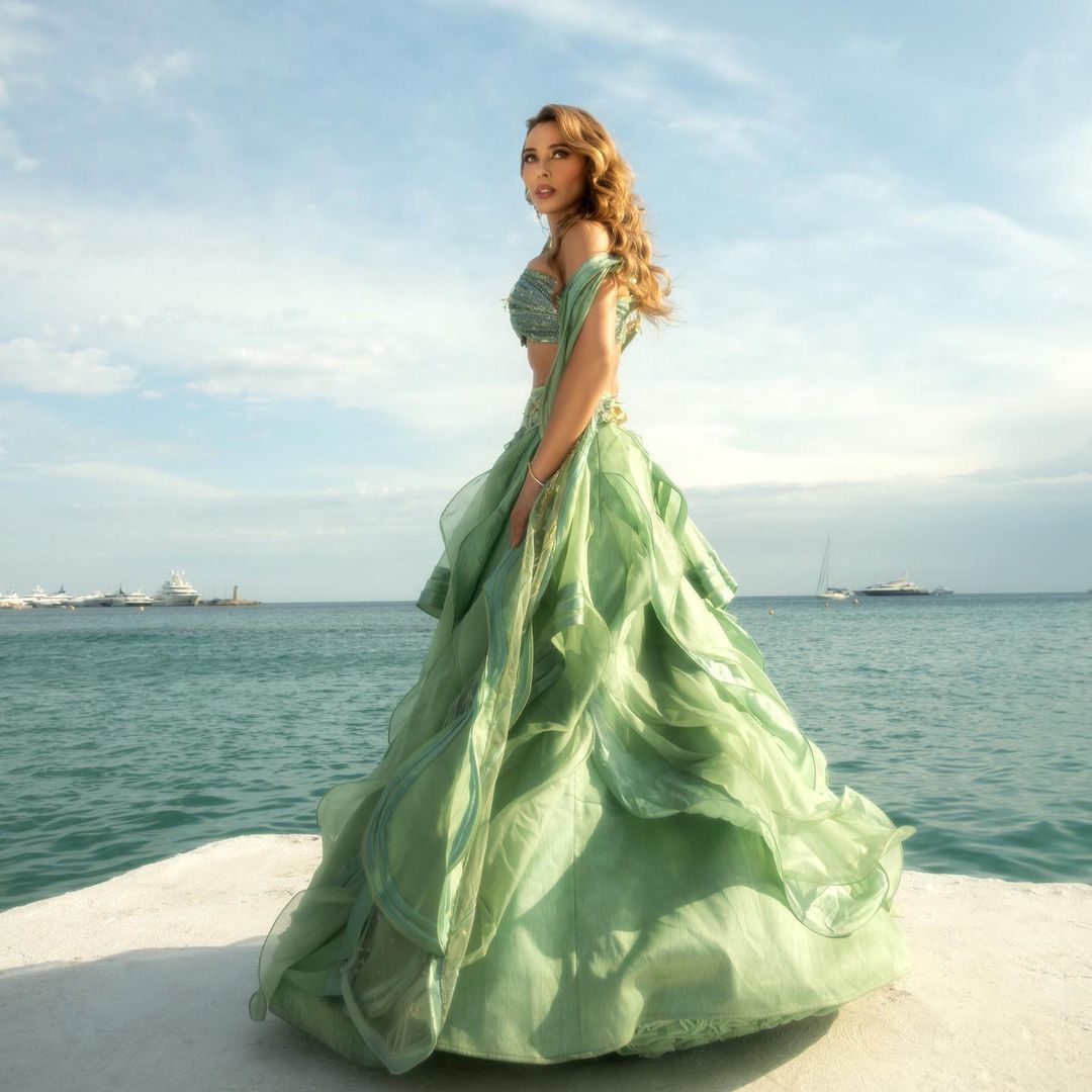 Doesn’t she look so pretty in this mint green colour lehenga?