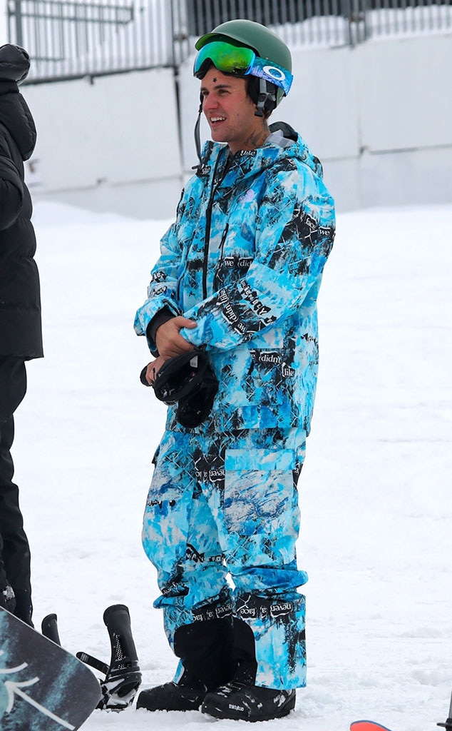 Justin Bieber Snowboard session! The singer enjoys the slopes with friends in Aspen