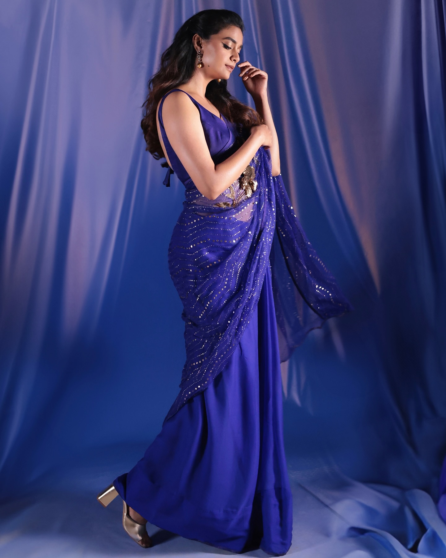 Keerthy opted for minimal accessories, allowing the saree to be the focal point of her look