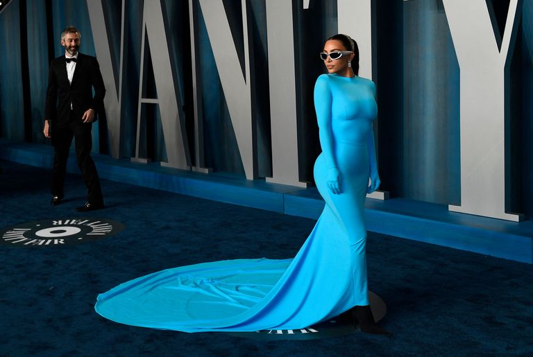 Kim Kardashian Hits the Vanity Fair Oscars Party in Skin-Tight Blue Gown