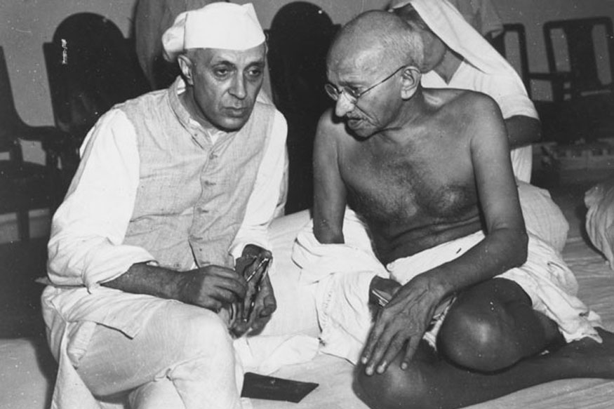 • Pandit Jawahar Lal Nehru with Mahatma Gandhi.