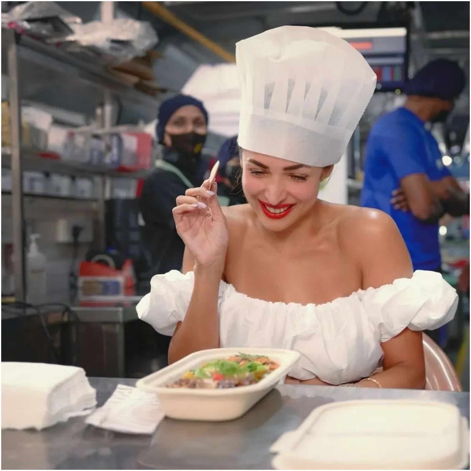 Malaika Arora seen donning the chef's hat while visiting her restaurant