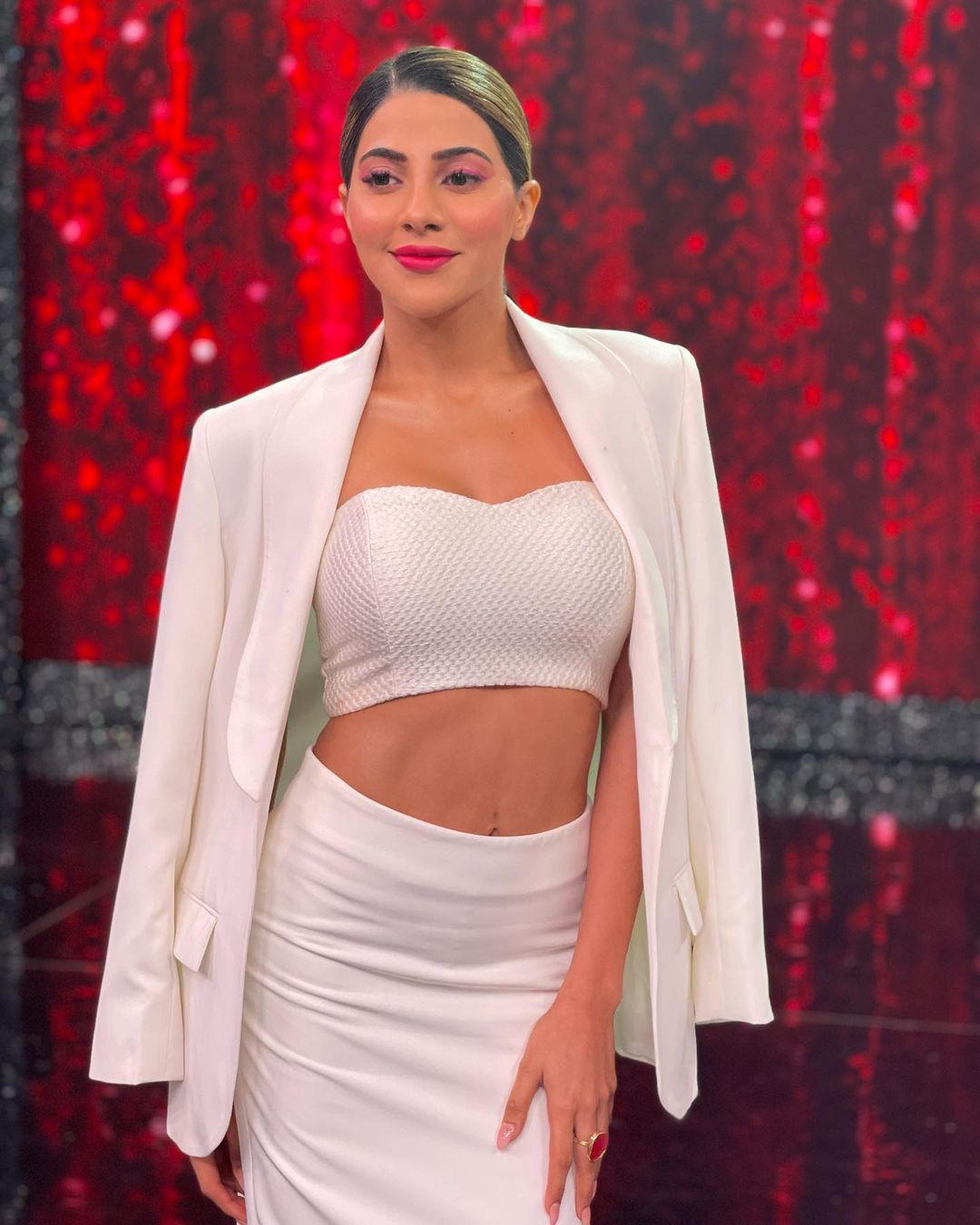• Nikki Tamboli looks sexy in the co-ord set and matching blazer