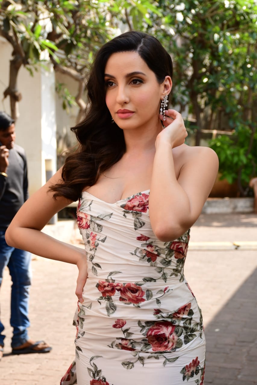 Nora Fatehi In Figure-hugging Floral Dress Gives Spring Vibes