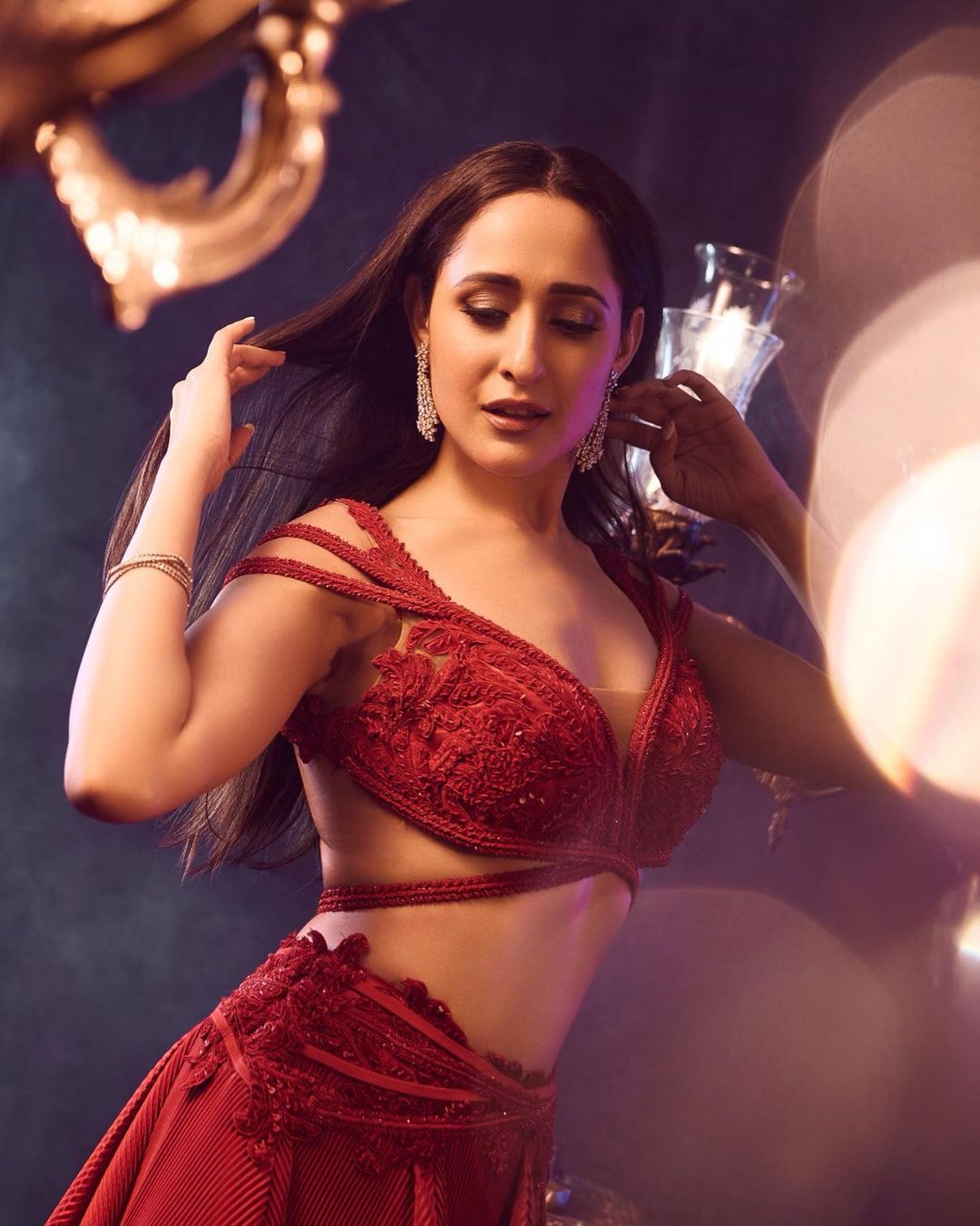 Pragya Jaiswal cuts a striking figure in a red lehenga