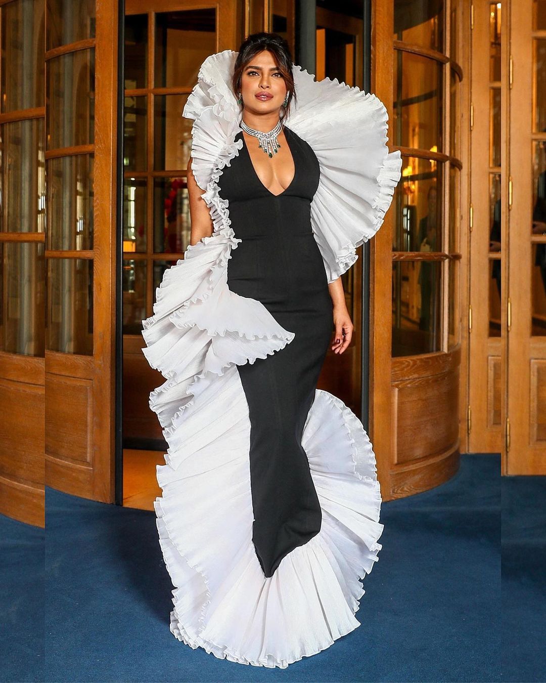 Priyanka Chopra made heads turn in the black gown with white ruffles. Not to mention, the statement neckpiece that was the highlight of the look.