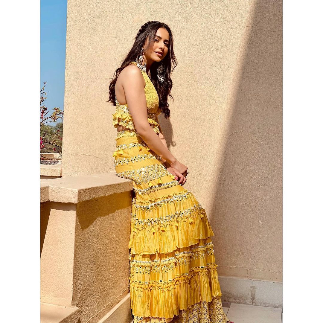Rakul Preet Singh looks glorious in the yellow ruffled lehenga