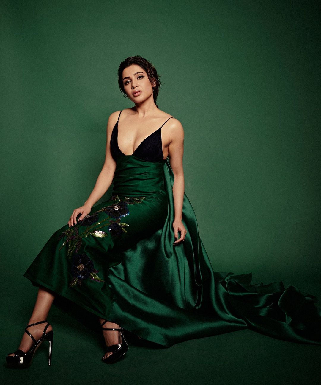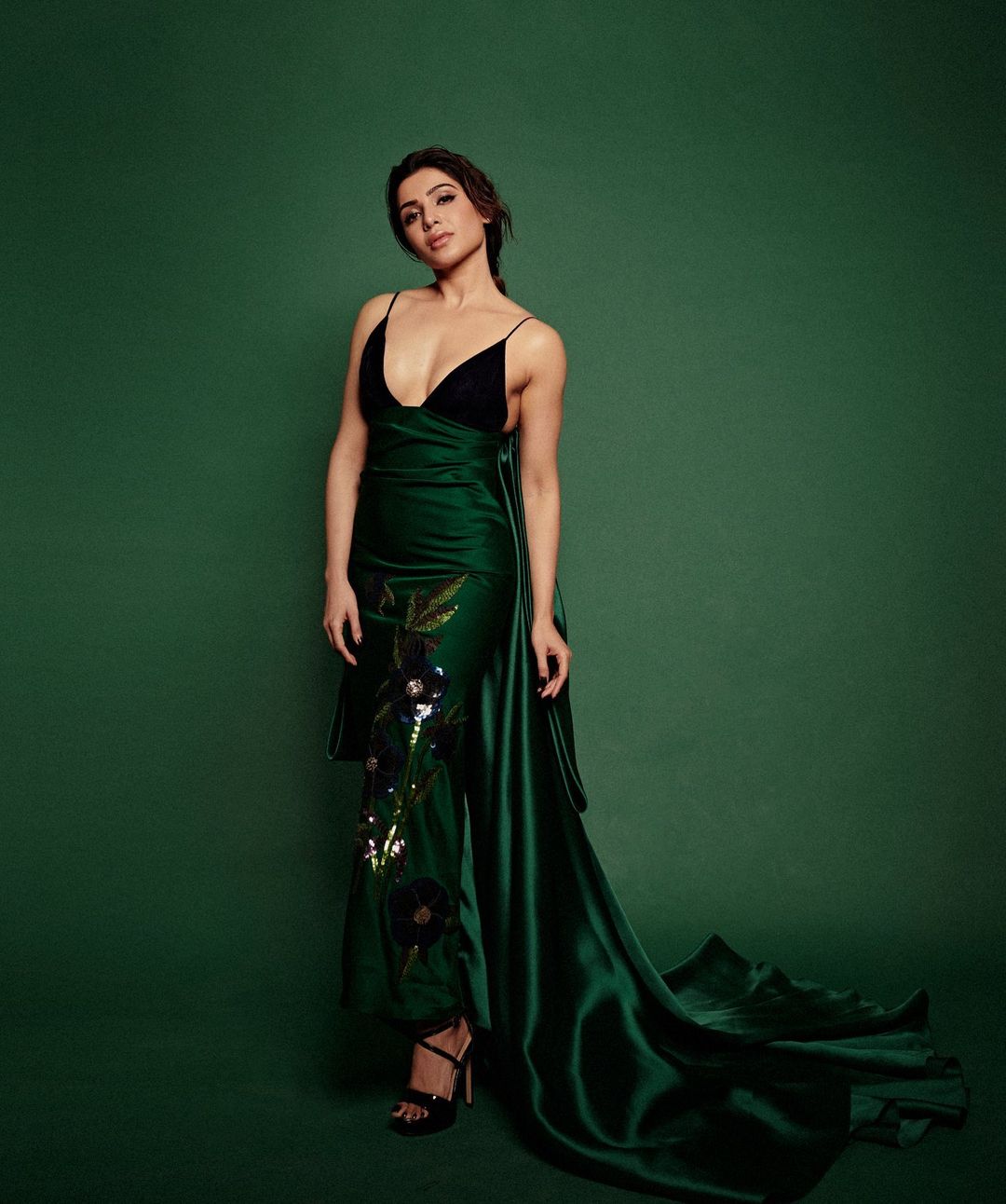 Samantha Ruth Prabhu Looks Breathtakingly Gorgeous In Latest Pictures In a Deep-Neck Green and Black Gown