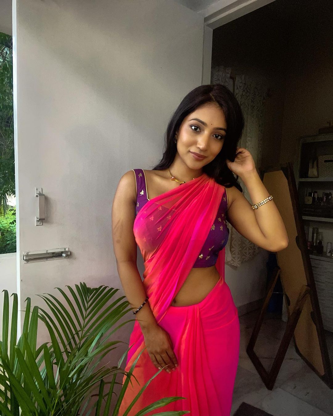 Nabha Natesh Sizzles In Red And Blue Half Saree!