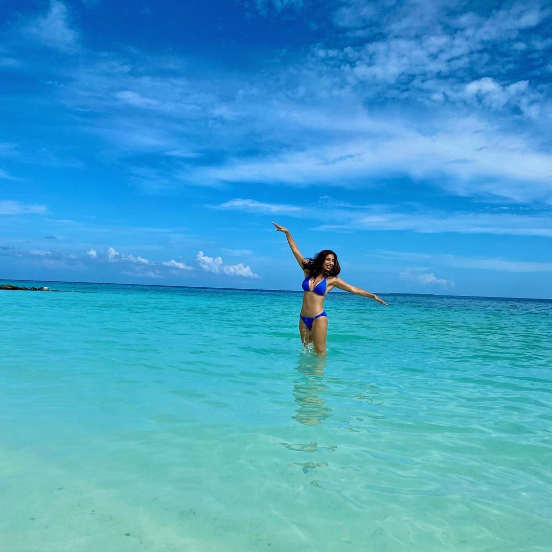 • Sophie Choudry is a sight to behold in the blue two-piece