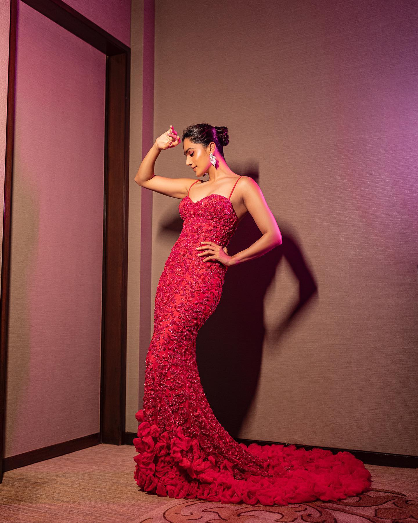 Taapsee Pannu is a vision in fuschia beaded gown with floral train