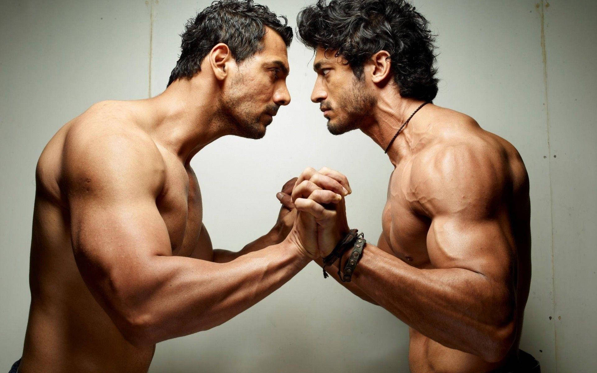 Muscle Man In Fighting Pose Wallpaper