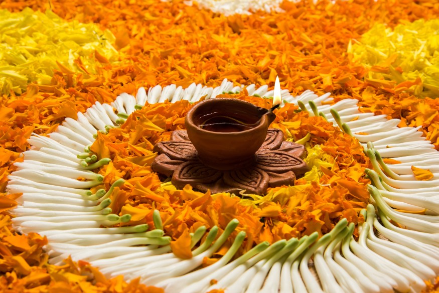Pookalam is a must-have during Onam celebrations (also spelt as Pookolam). Pookolam/Pookalam is made up of two words: 'Poo' (flowers) and 'Kolam' (flowers) (decorative pattern or rangoli)